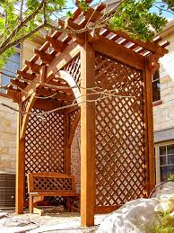 The side trellis create more privacy and it is ideal for planting some climbing roses near to the arbor. This arbor was designed with simplicity in mind. Grilled food is a whole lot tastier. Make use the wooden arbor benches with decorative wooden lattice sides that will also bring great visual details to your garden and also build the wedding curtain arbors to your garden that will come covered with multitudes of flowers and would make a fancy entryway for your wedding area! If you have a drill, a jigsaw and a circular saw—and some experience using them—you can build this arbor in two or three weekends.